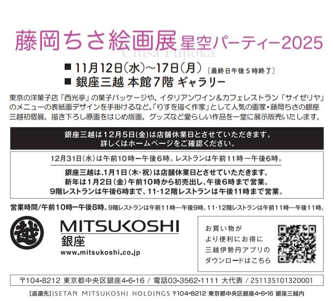 【銀座三越 本館】2025/11/12〜17日 藤岡ちさ絵画展